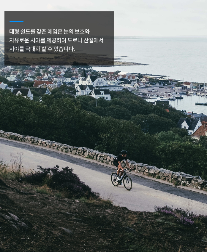 속도감 넘치는 라이딩에서도 넓고 또렷한 시야를 확보할 수 있어요.